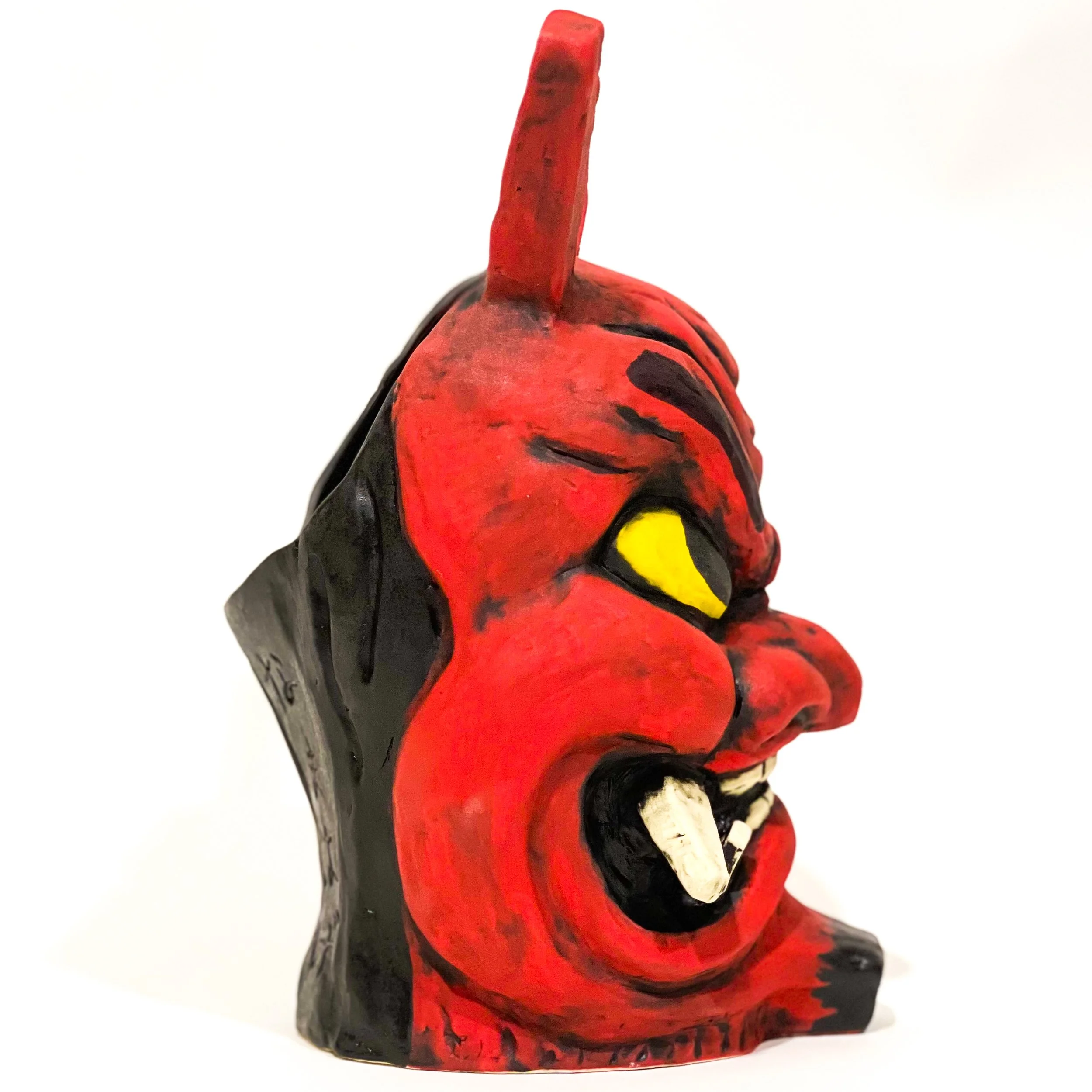 The 5th mug in the Japanese Demon Series. Namahage is a frightening, knife-wielding demon used to scare children into behaving. This mug is big, standing 9” tall.